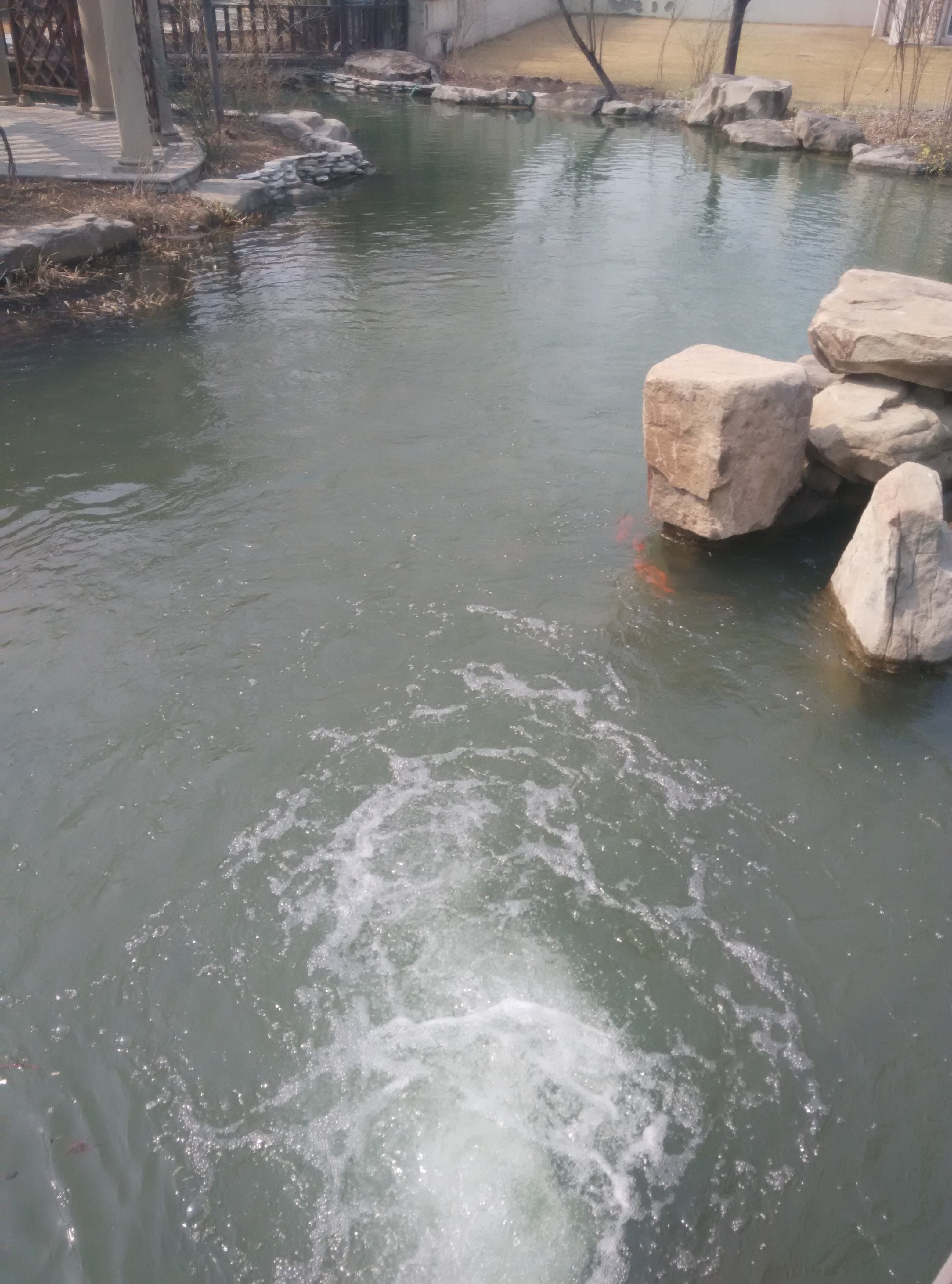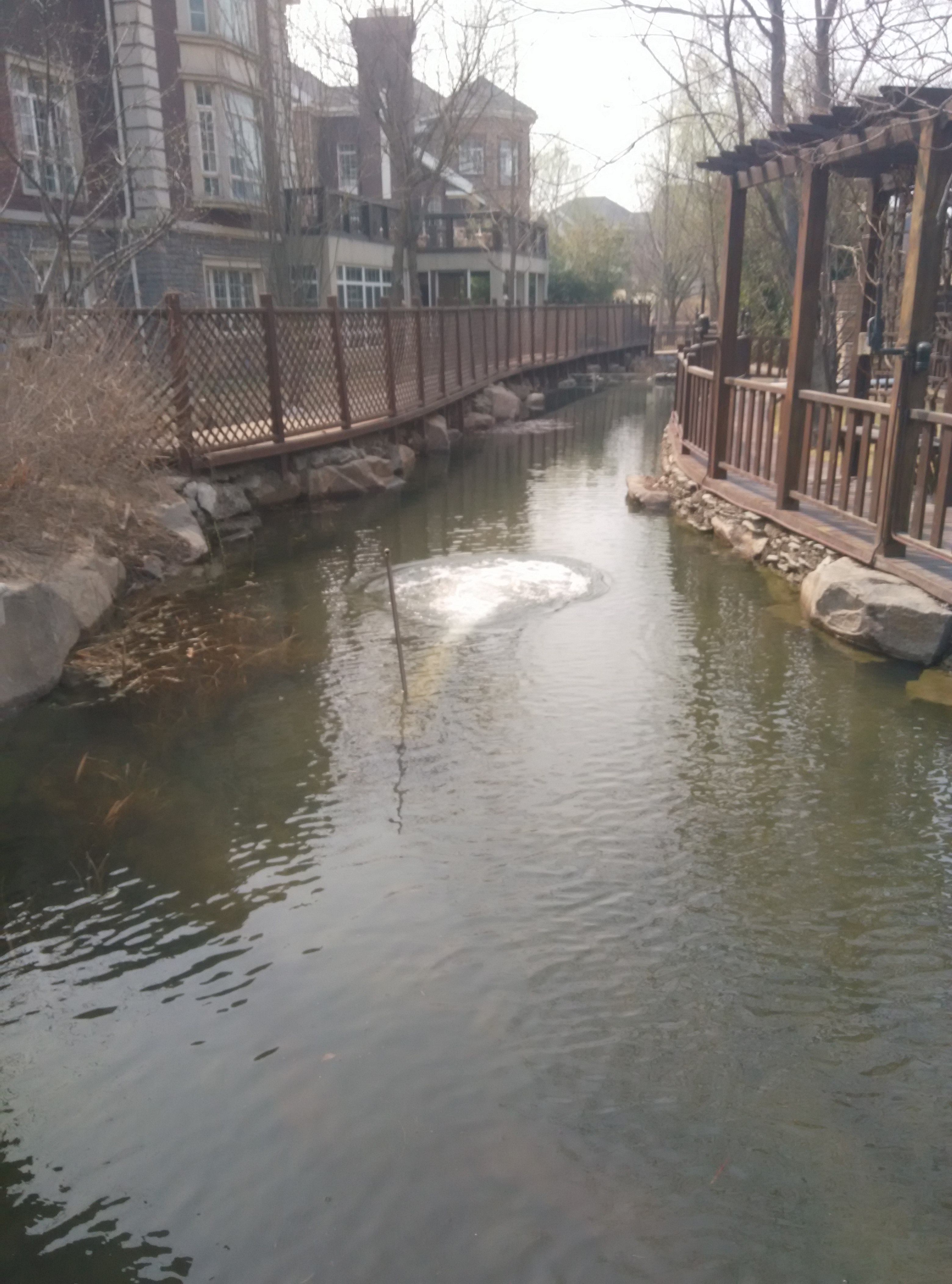別墅區(qū)景觀河道安裝26臺擾冰設(shè)備,冬季無結(jié)冰,實現(xiàn)四季溪水長流。