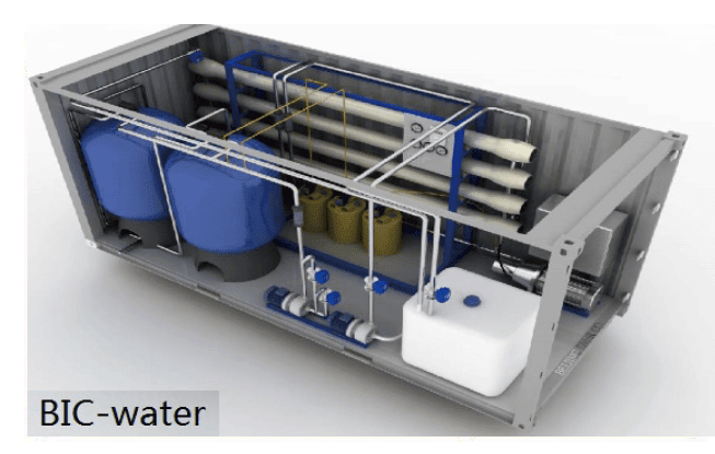 產(chǎn)水箱和恒壓供水系統(tǒng)組成供水單元,淡水可用作飲用水,工藝用水,應(yīng)急用水。
